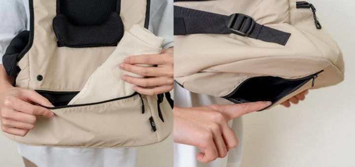肩や腰への負担を軽減する前抱き専用キャリーバッグ