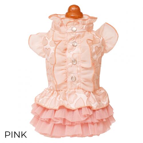 【GODPIVA】ハートフリルワンピース[ゴッドピバ]犬用 服 ドッグウェア サテン調 立体ハート 華やか
