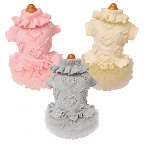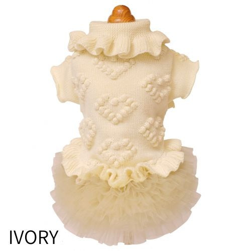 【GODPIVA】ローゲージニットワンピース[ゴッドピバ]犬用 服 ドッグウェア 日本製 ウール チュチュ 立体ハート