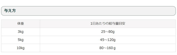 年齢・生活環境・活動量・健康状態に応じて適宜調節しながら与えてください。