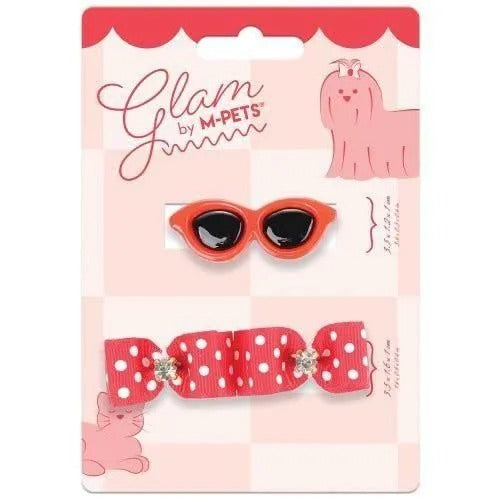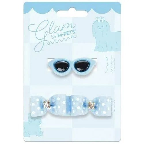 【M-PETS】エムペッツ GLAMヘアーアクセサリー CLIP&RUBBER サングラス<全2色> 犬用 パッチンクリップ リボン ゴム付き