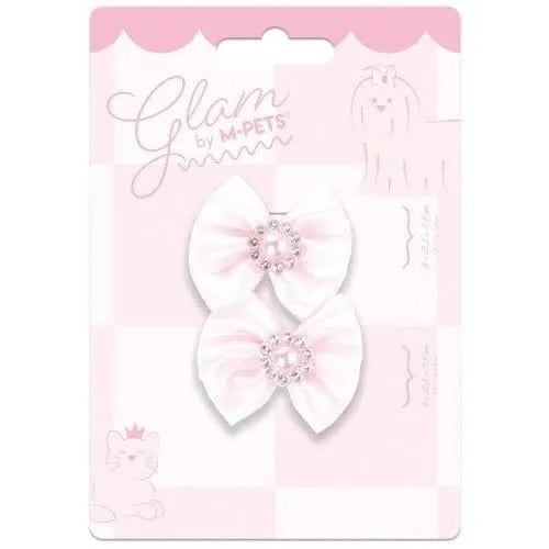 【M-PETS】エムペッツ GLAMヘアーアクセサリー RUBBER パールリボン<全2色> 犬用 パッチンクリップ リボン ゴム付き