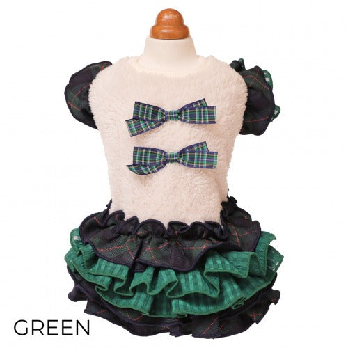 【GODPIVA】あったかテラボアチェックワンピース[ゴッドピバ]犬用 服 ドッグウェア フリル テラヘルツ 日本製