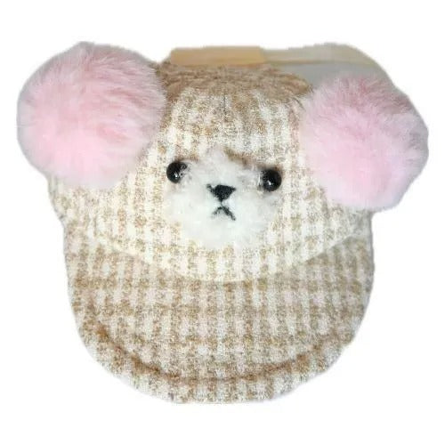 ふわふわのお耳とモコモコのお顔が付いた、くまさんキャップ♪