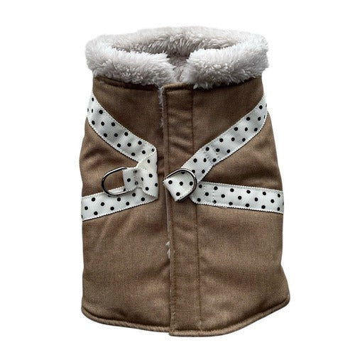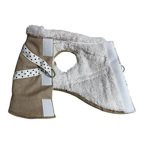 お洋服型のハーネスです。背中開きで着脱も楽チン♪柔らかく、肌触りの良い、サンゴフリース素材で作られたハーネス