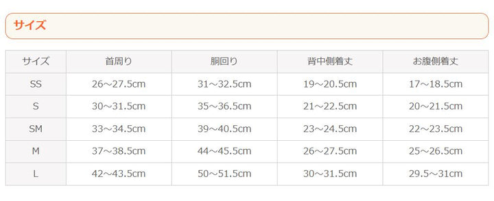 サイズ 首周り 胴回り 背中側着丈 お腹側着丈