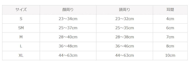 サイズ 顔周り 頭周り 耳間