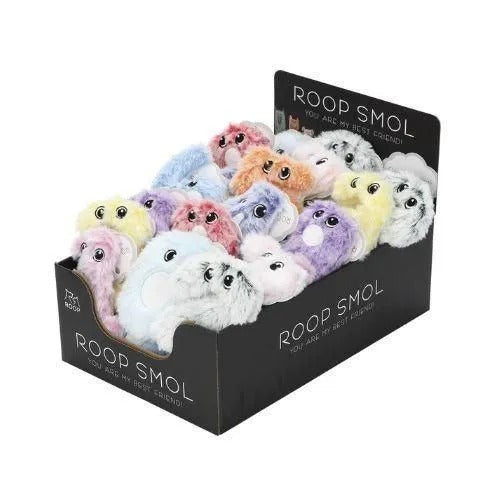クリッとまん丸の目が可愛いく、フワフワのボディーを押すとプープー音(スクウィーカー)またはカシャカシャ音が楽しめます。小型犬におすすめのサイズ感です。