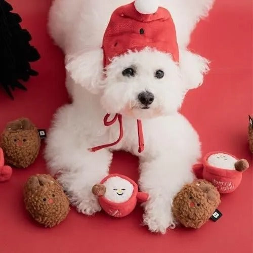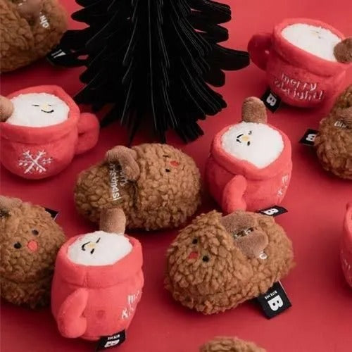 楽しいクリスマスを一緒に過ごす かわいいスリッパとホットチョコのおもちゃたち!
